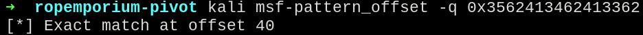 Sending a payload generated by metasploit-pattern_create, and calculating the offset with metasploit-pattern_offset, the offset found was 40.