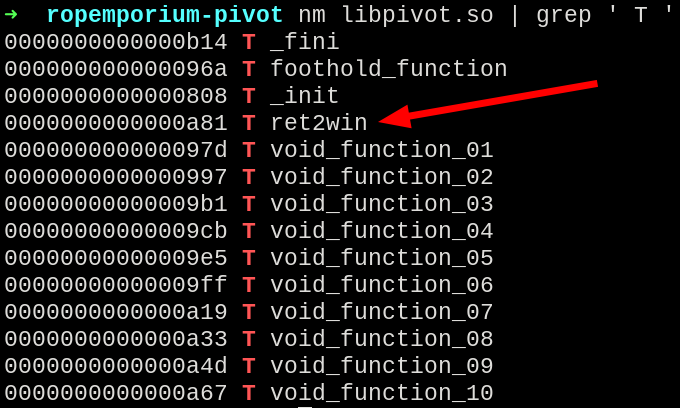 The ret2win function inside the libpivot lib