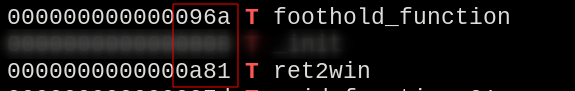 Base addresses of the functions foothold_function and ret2win