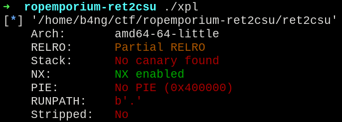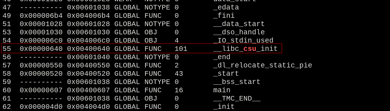 When reading the paper provided by the challenge, a new concept was introduced, called ret2csu, which carries the same principle as ret2libc but instead, using the gadgets of the initialization functions present in the binary, like __libc_csu_init.