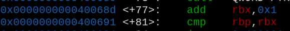 rbx,rbp,r12,r13,r14,r15; 0forrbx, so we won’t affect the address calculation at the +73 call;1forrbp, so we won’t jump after the comparison;- The dynamic section address that contains the